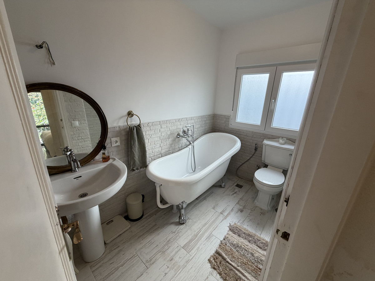 Cette propriété, agencée sur deux niveaux, offre trois terrasses réparties sur les deux étages. Elle comprend actuellement deux chambres, avec la possibilité d'en créer une troisième. Chaque niveau est configuré comme une unité indépendante, avec une chambre, une salle de bains et une cuisine au rez-de-chaussée et à l'étage ; cependant, la maison peut facilement être rénovée pour former un seul et même espace. Le spacieux séjour donne directement sur la terrasse et le jardin, et la salle de bains du rez-de-chaussée a été récemment rénovée. Cette maison vous offre la liberté de repenser et de rénover l'intérieur selon vos goûts.