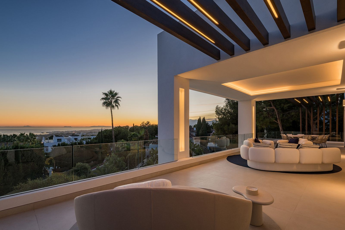 This exquisite villa is situated in a stunning location on the slopes of La Concha mountain within the prestigious private urbanization of Sierra Blanca, located on Marbella's Golden Mile. Here, serenity, a natural environment, and closeness to the city's most renowned landmarks create a tranquil atmosphere, just a few minutes away from Marbella's city center, the historic old town, the Roman Bridge, and Puerto Banús. The villa underwent a complete renovation in 2025. The furniture is available for purchase separately at a price of €350,000 plus VAT. Notable features include aerothermal heating, an automatic irrigation system, glass doors, built-in wardrobes, a laundry area, an open-plan fully equipped kitchen/living room, 24-hour security, a wine cellar, air conditioning, a barbecue, double glazing, a guest toilet, marble flooring, a sauna, a gym, underfloor heating, an alarm system, a basement, furnishings, security cameras, a cinema room, a fireplace, a private community, a jacuzzi, a Turkish bath, a dressing room, porcelain tile flooring, and more.