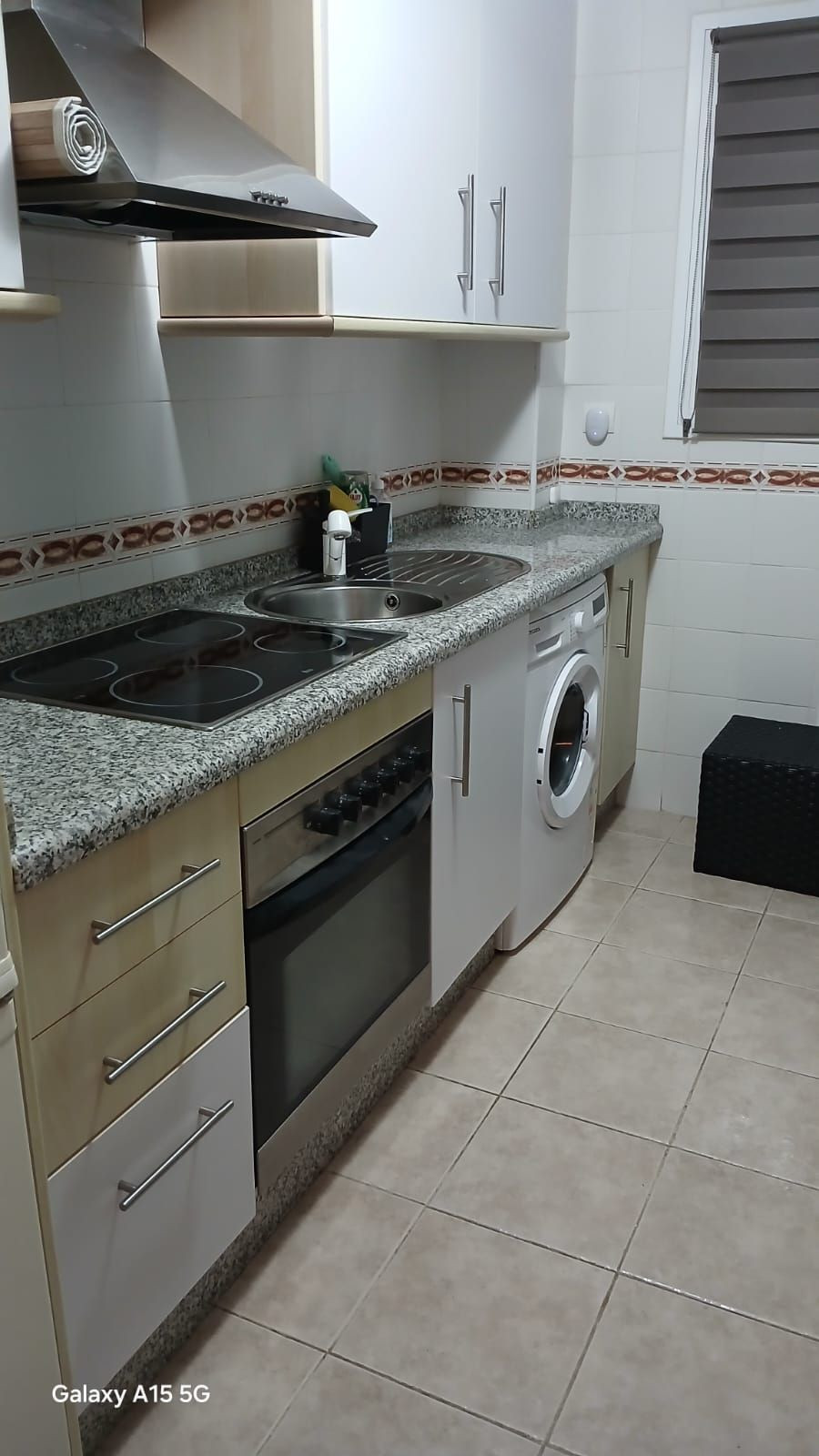 Le séjour-salle à manger est spacieux et très lumineux, avec un accès direct à la terrasse, idéal pour profiter du climat méditerranéen toute l'année. La cuisine est entièrement équipée et conçue pour optimiser l'espace.