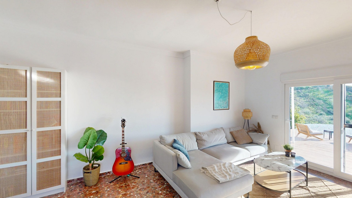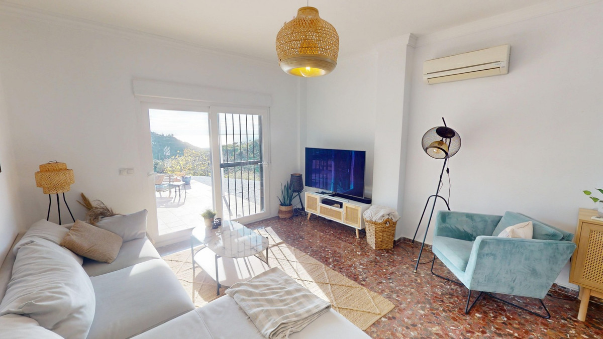 Step into a world where Mediterranean elegance meets modern comfort in this charming 76.2 m2 property located in the heart of Moclinejo, Malaga. This sun-drenched home is your gateway to the coveted Spanish lifestyle, with two bedrooms and thoughtfully designed living space that maximises both form and function. The heart of this home is undoubtedly the stunning kitchen, where culinary dreams come true. Light wood furniture brings warmth, while state-of-the-art appliances, including a sleek gas hob and built-in oven, satisfy your inner chef. The checkered floor adds a touch of classic charm, combining tradition with contemporary style. The living-dining room is an example of the modern Spanish lifestyle, with natural light streaming in through large windows, illuminating the space and offering stunning views of the surrounding landscape. An elegant rattan pendant lamp creates a cozy atmosphere for relaxing or entertaining. The room opens onto a lovely terrace, ideal for alfresco dining or simply enjoying the Mediterranean sunshine. The master bedroom is a serene retreat, with 17.7 m2 of absolute comfort. Mirrored cabinets maximize space and reflect light, making the room feel even more spacious. Another rattan lamp adds a bohemian touch, complementing the airy atmosphere of the room. The second bedroom, currently used as a children's room, demonstrates the versatility of the property. With its neutral palette and charming details, it's ready to adapt to your needs, whether as a children's bedroom, home office, or guest suite. The bathroom is a spa-like oasis, with stylish tiles and modern fixtures. A large window allows natural light to flood the space, creating a bright and refreshing atmosphere. Throughout the property, terracotta floors bring an authentic Spanish character, while modern amenities such as air conditioning ensure year-round comfort. The thoughtful layout and elegant design create a harmonious flow, making every day feel like a Mediterranean holiday. Located in the picturesque village of Moclinejo, this property offers the perfect balance between tranquillity and access to Malaga's vibrant culture. Here, you don't just buy a house; Invest in a lifestyle that embodies the essence of Spanish charm and modern convenience. Make this place your own Mediterranean paradise and start living the life you've always dreamed of. We are pleased to be able to present this dream property to you very soon, either in person or via a virtual viewing. Because this world is unique, just like our Axarquía. In Andalusia. On the Costa del Sol. Here, on the sunny side of life... We are delighted to be able to present this property to you soon, either personally or via virtual viewing. Because this world is unique - like our Axarquía. In Andalusia. On the Costa del Sol. Here, on the sunny side of life...