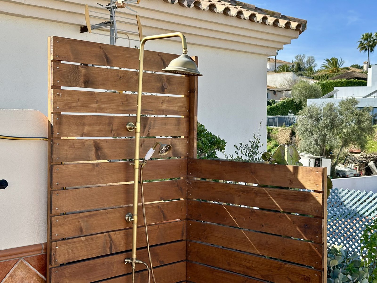 When the current owner renovated, they also installed an outdoor shower on the top terrace, so you are able to be cooled down when tanning in the hot summer months.