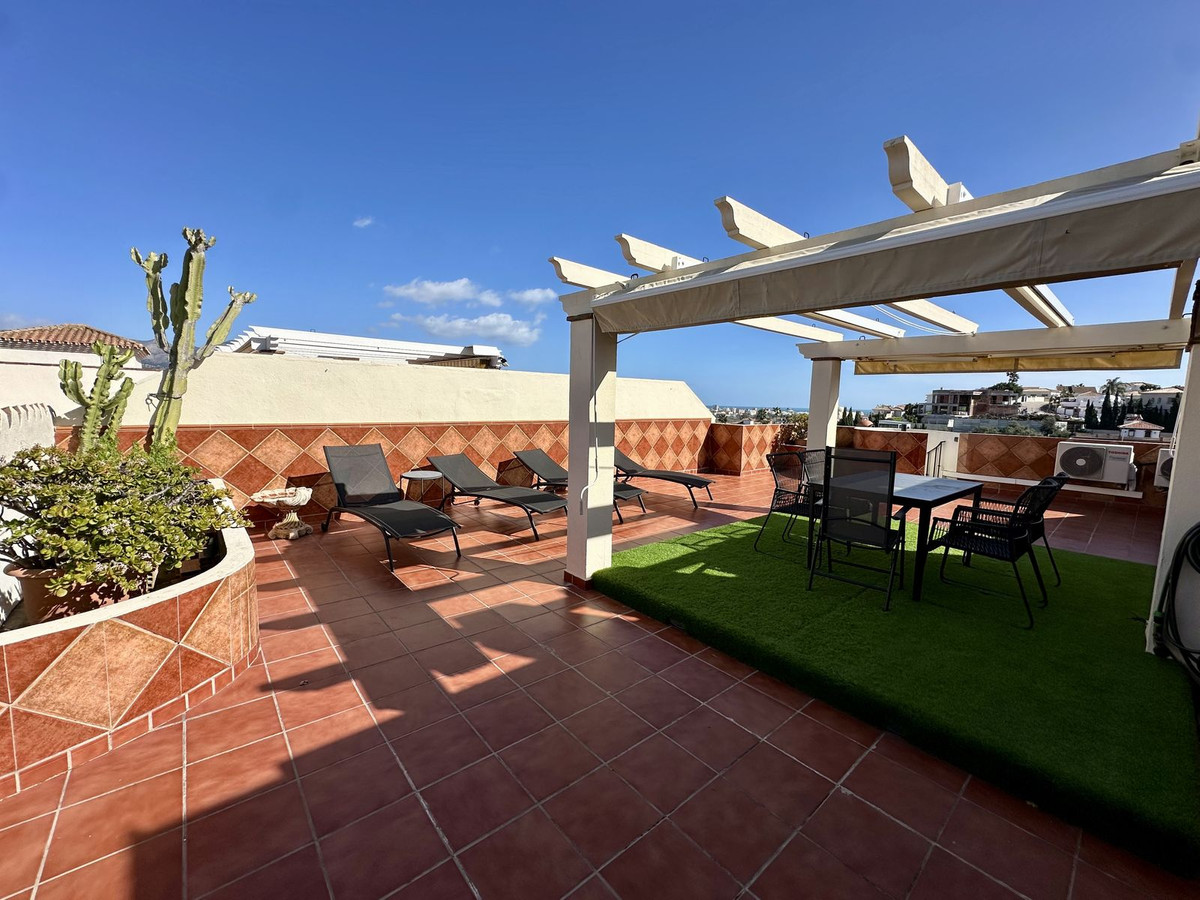 From the living room you enter a south facing good size terrace. However, if you walk up the external spiral staircase, you find yet an other extremely large solarium, where you can enjoy the most incredible views of both the sea, the enchanting mountains & all the green areas around Cerros del Aguila.