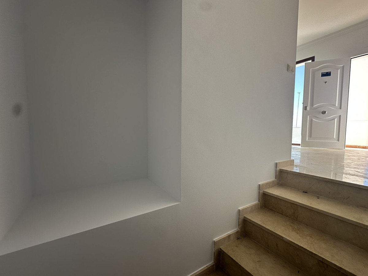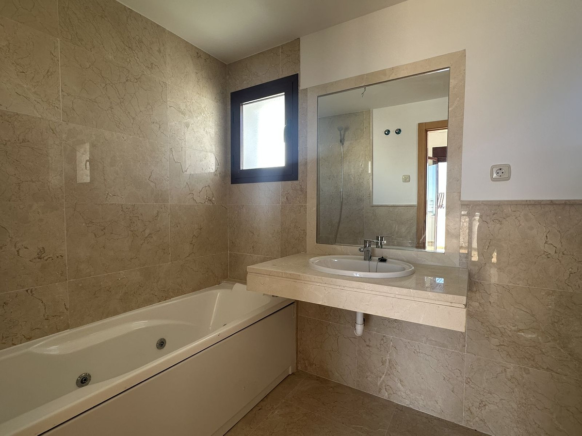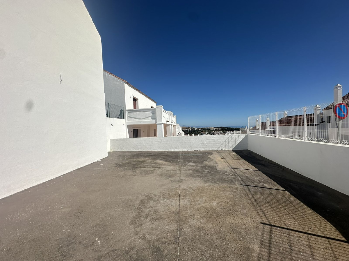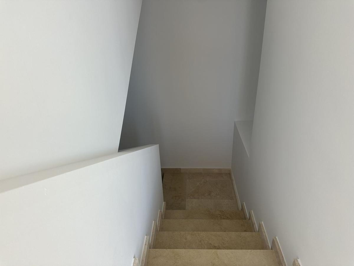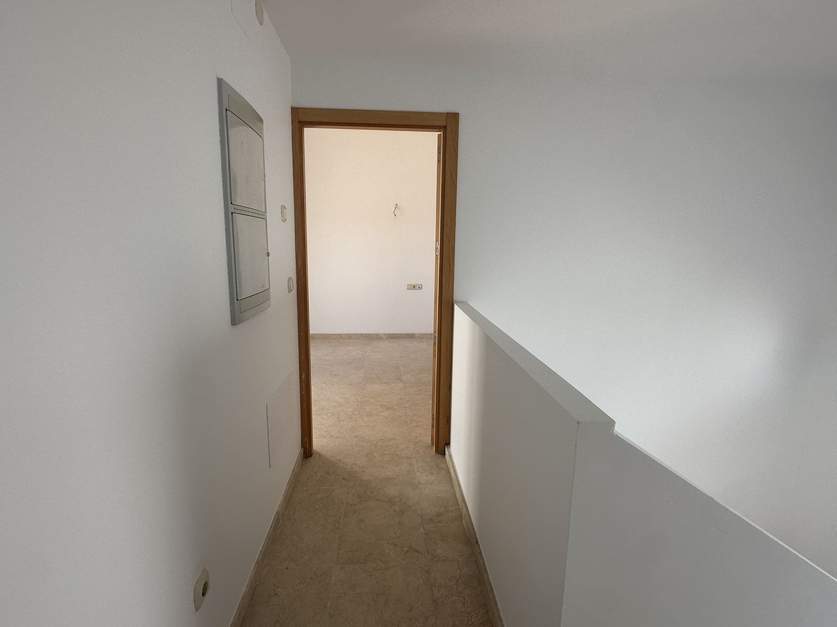 The upper floor houses the sleeping area, with an entrance hall, hallway, two bedrooms with built-in wardrobes and two full bathrooms, offering privacy and comfort. It also features a large open terrace, ideal for enjoying the Costa del Sol climate and stunning panoramic views.