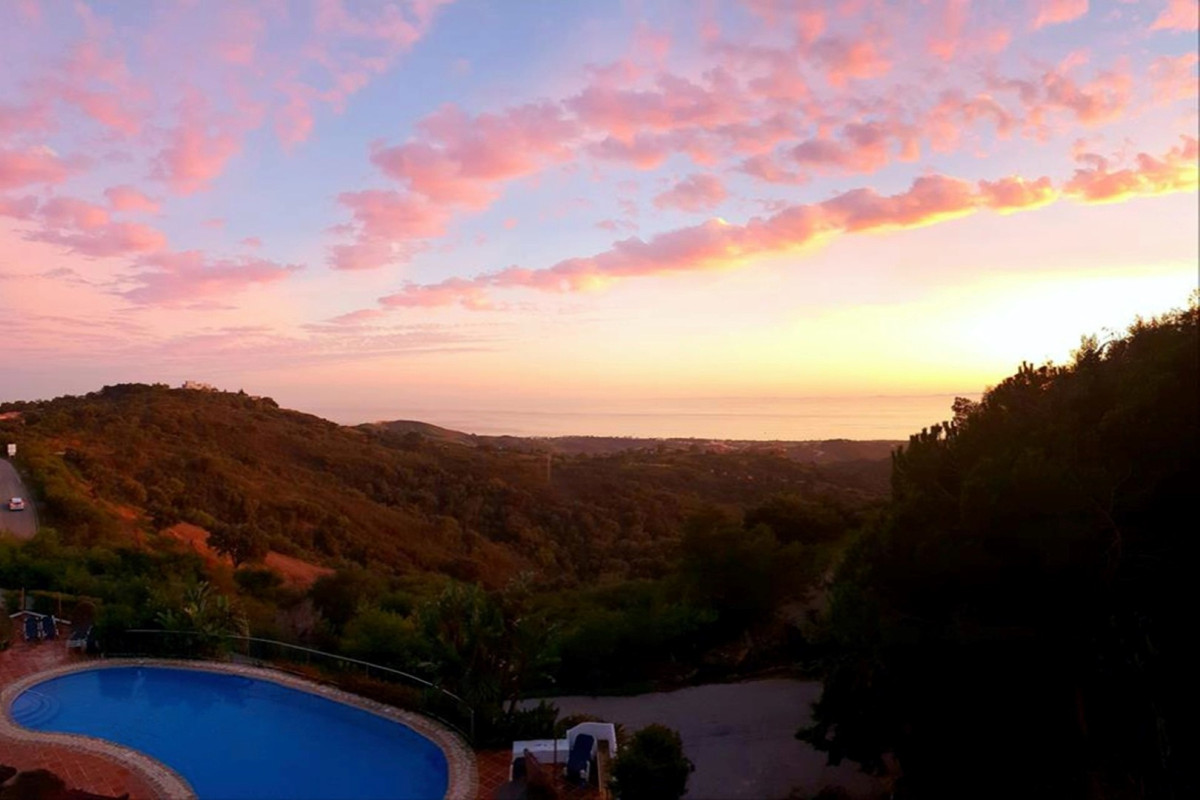 WHAT A VIEW! This superb south facing 3 bed corner duplex apartment lies on the hills of Elviria and boasts utterly breathtaking views to the sea towards the coasts of Africa. Probably the best unit in this small complex of 28 neighbors only, the apartment has been tastefully refurbished and upgraded, is in excellent condition and perrfectly equipped. The property features on a main floor a good size living-dining room open onto a superb terrace with commanding views, luxury open plan kitchen with Silestone work-top and Bosh appliances, one double bedroom with large wardrobes opening onto the main terrace and one bathroom with large walk-in shower. The lower level accommodates the 2nd and 3rd bedrooms both with large wardrobes sharing a large bathroom and a beautiful covered terrace with stunning views as well. This property is by far the most private within the complex and benefits from a large rear patio with al-fresco dining and BBQ area and a private storage room. The community is gated, very peaceful and private, perfectly integrated in the naturals surroundings with a superb swimming-pool and parking spaces. Ideal for long term stay or family holiday. It really worths a viewing.