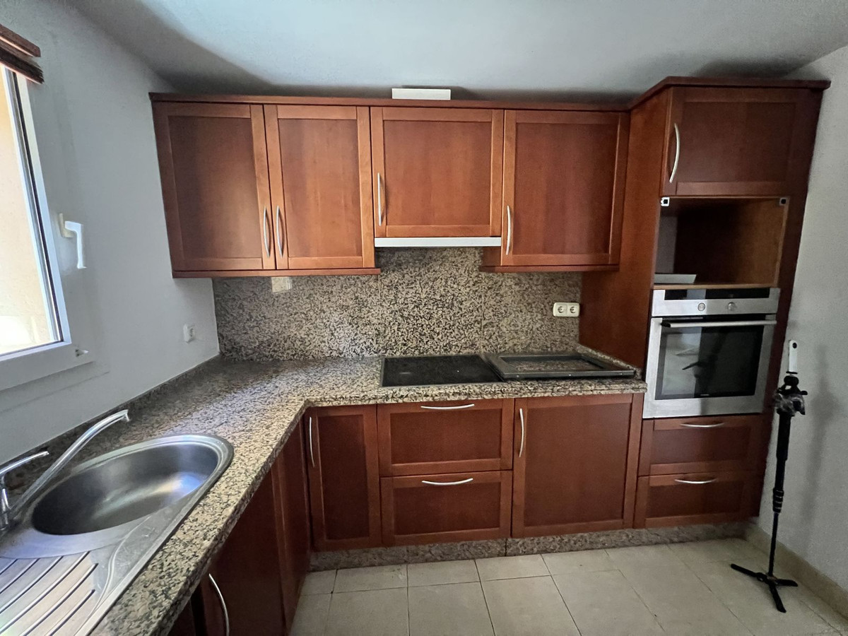 On the ground floor, there is a spacious living-dining area with great natural light, an independent kitchen with the possibility of being opened up to the living room with a minor renovation, a guest toilet, and a separate utility/laundry room. The property features centralized air conditioning and marble flooring.