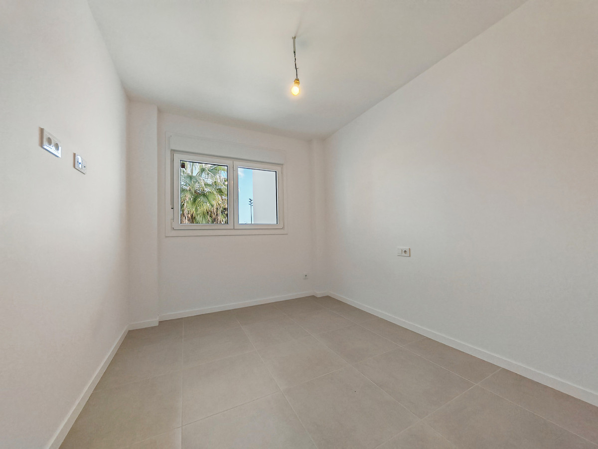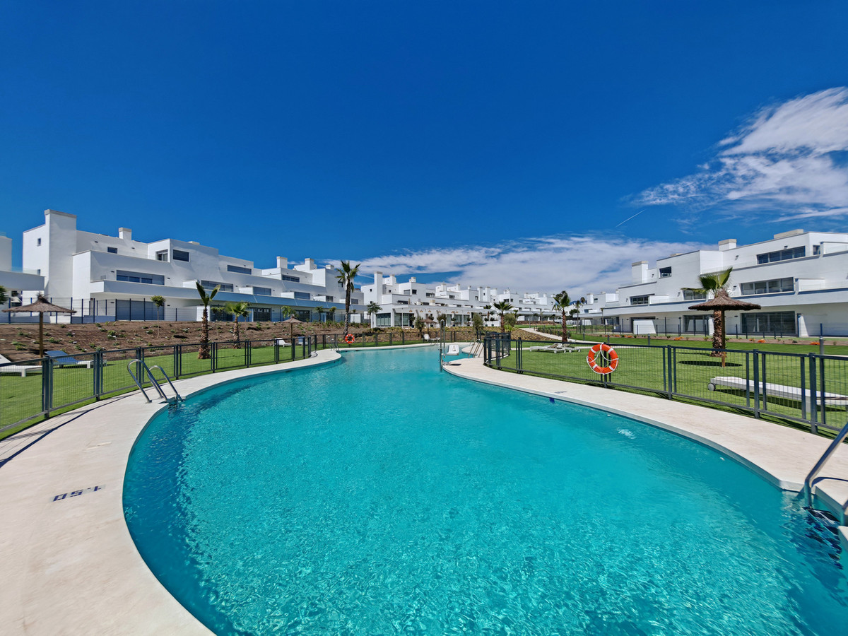 Apartment for sale in Cancelada, Estepona with 2 bedrooms, 2 bathrooms, 1 on suite bathroom and with orientation west, with communal swimming pool, private garage (1 parking spaces) and communal garden. Regarding property dimensions, it has 91 m² built, 73 m² interior and 18 m² terrace. Has the following facilities amenities near, transport near, air conditioning, central heating, fully fitted kitchen, utility room, guest room, storage room, gym, alarm, double glazing, video entrance, brand new, living room, security shutters, laundry room, internet - wi-fi, 24h service, gated community, lift, pool view, unfurnished, close to children playground, close to sea / beach, close to golf, close to shops, close to town, close to schools and surveillance cameras.