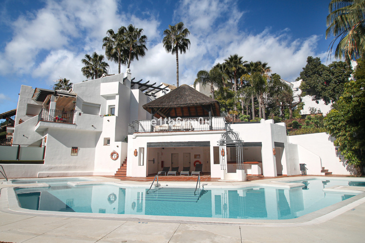 Immaculate modern South-facing three-bedroom townhouse within the stunning urbanisation of Zahara de Istán, just off the Istan road, and only a 10-minute drive from Marbella's Golden Mile, Puerto Banús and an array of amenities. The community offers immaculate lush gardens, a charming club house, a refreshing swimming pool. Distributed over two floors, the elevated front door and entrance hall leads to the large contemporary living room a few steps down below, where is the bright living/dining room with access to a tranquil covered terrace with countryside views, modern and spacious fully equipped kitchen and a guest toilet. On the ground floor, the master bedroom en suite and two guest bedrooms sharing a bathroom. All rooms have access to this lower terrace / private garden of 74M2, and both terraces are connected through an outdoor staircase. Private driveway / parking space.