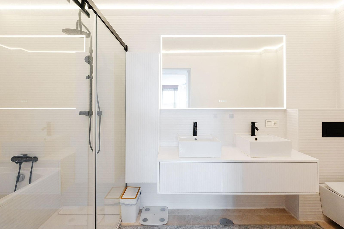 This spectacular renovated house, with its elegant contemporary style, offers a total of three bedrooms with three bathrooms, plus an office area, and a large living room of over 50m2 with an integrated kitchen.