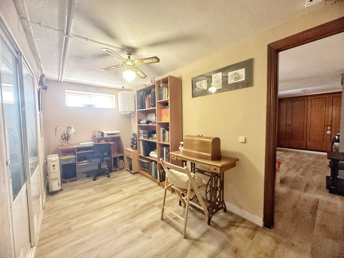 De plus, la propriété comprend deux salles de bain complètes et des toilettes pour invités, des sols en marbre, une porte blindée et la climatisation. Au rez-de-chaussée se trouve un appartement indépendant avec entrée privée, chambre, salle de bain et bureau, idéal pour accueillir des invités, de la famille ou pour aménager un espace de travail à domicile ou en télétravail.