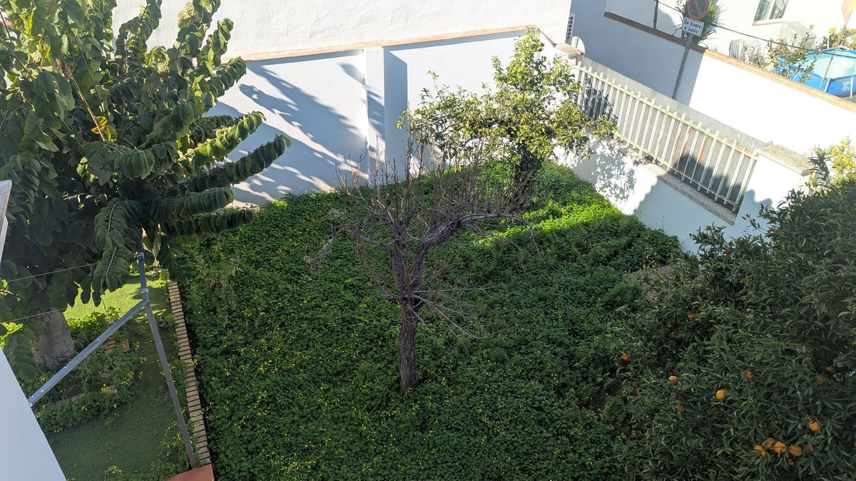 La maison se dresse au centre du terrain, entourée d'un charmant jardin arboré d'arbres fruitiers — orangers, citronniers, chérimoles et autres — qui offrent ombre naturelle et cachent un cachet unique. L'espace est suffisamment vaste pour y aménager une piscine et créer ainsi un véritable havre de paix.