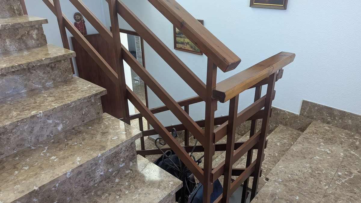 Au rez-de-chaussée, vous trouverez un salon confortable, une cuisine indépendante, deux chambres et une salle de bain complète. À l'étage, accessible par un large escalier, se trouvent trois chambres avec placards intégrés et une deuxième salle de bain complète — idéal pour les familles nombreuses, les invités ou pour aménager un bureau à domicile.