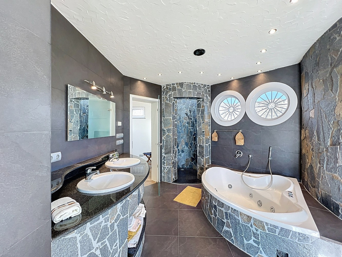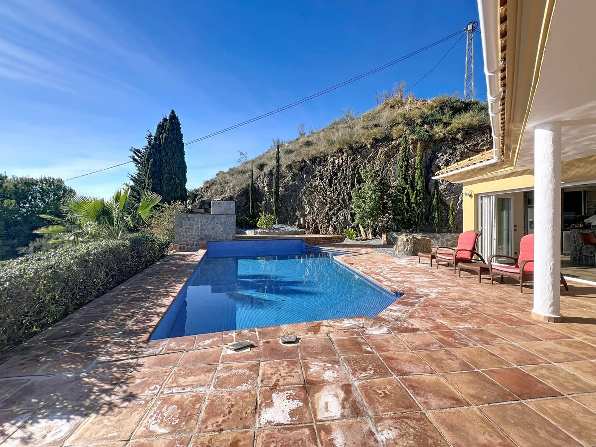 This beautiful villa in Algarrobo combines spaciousness, light and comfort, offering an ideal lifestyle to enjoy the tranquility and climate of the Costa del Sol. In the main house we find a large American kitchen open to the living-dining room, which is characterized by its luminosity and generous spaces, perfect for family gatherings or with friends. The house has two bedrooms, both with en-suite bathrooms, guaranteeing comfort and privacy. The property also has a guest apartment, which includes a small kitchen and a full bathroom, offering independence and flexibility for family or visitors. Outside, the villa has a private swimming pool, a barbecue area, a laundry room and a garage, as well as a large plot of 2,500 m2, ideal for enjoying the outdoors, installing leisure areas or creating a personalised garden. The property boasts spectacular sea and mountain views, adding unique value and charm. A unique, bright and versatile property, perfect both as a main residence and as a second home on the Costa del Sol. We are delighted to be able to present this property to you soon, either personally or via virtual viewing. Because this world is unique - like our Axarquía. In Andalusia. On the Costa del Sol. Here, on the sunny side of life...