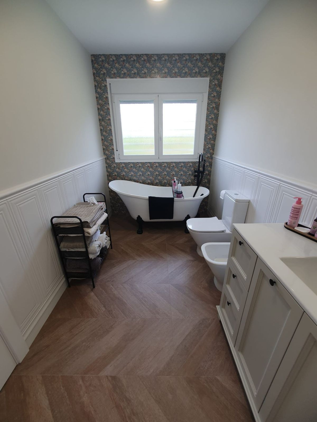 Upon entering the front of the house you have a nice porch area which overlooks the pool with plenty of space for a lounge or dining set. Walking into the house you have a spacious hallway with new ceramic wood effect flooring that flows throughout each room of the house. There is a large lounge with a modern 180cm electric fireplace, air conditioning and space for dining if required. The two large double bedrooms both have air conditioning. One bedroom has a beautiful en suite bathroom with elegant Victorian style bath & shower. There is a separate renovated family bathroom at the rear of the house. You have a beautiful spacious modern kitchen with top quality work surfaces, cupboards, & appliances. All rooms have new modern white doors, double glazed windows with persiana & fly protectors.