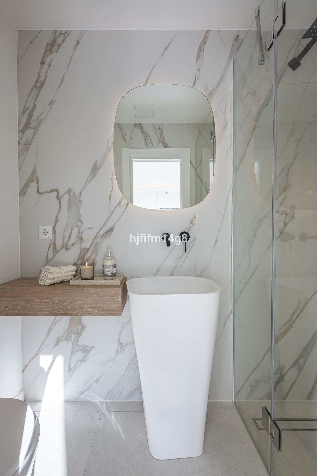 The property is distributed over three levels and has been designed with modern luxury living in mind. Upon entering, you are welcomed into a bright open-plan living and dining area with a custom-made contemporary kitchen featuring beautiful high-end Calacatta marble finishes. The living space is enhanced by a bespoke sound system throughout the house, including the master bathroom, dimmable lighting in all bedrooms and the living room, and carefully selected designer elements such as custom-made artwork, a bespoke sofa and upholstered armchairs finished with Mark Alexander fabric. A 65” Samsung Art Frame TV and a unique interior vegetal garden with integrated lighting further elevate the ambiance.