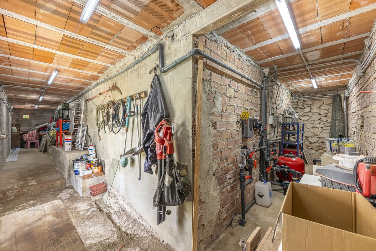 Outside, the various patios and terraces surround a private pool where the sun shines all day. The property also offers parking for more than four vehicles, several storage rooms, and its own well that supplies water to the gardens and fruit trees that adorn the estate. Among its modern amenities are solar panels with battery storage, providing energy efficiency and sustainability.