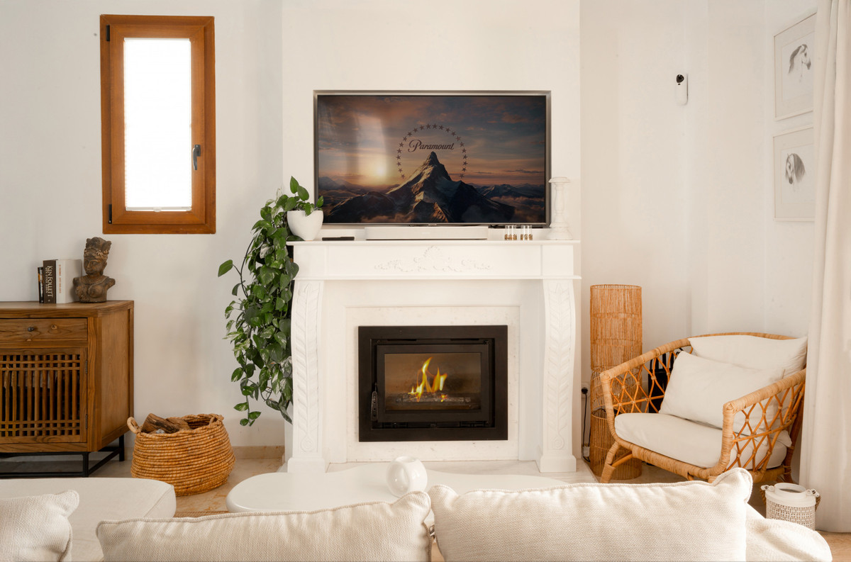 Upstairs, the property features three spacious bedrooms with direct balcony access, including a master suite with a private terrace and peaceful views over the surrounding hills.
