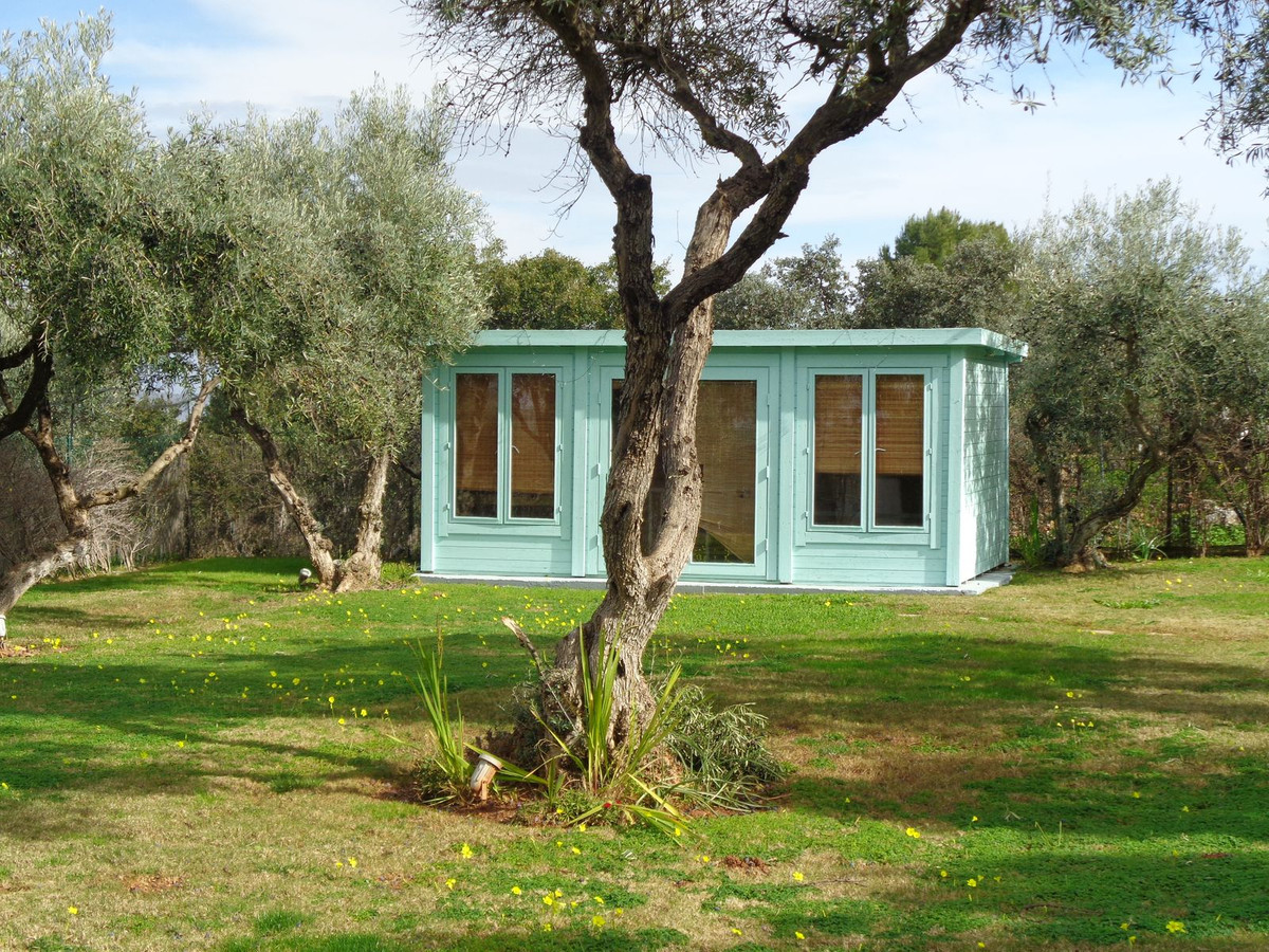 Pass through the archway and you enter the spacious lawned Olive Grove. Also in this locale is a wooden workshop. It has electricity, air con and lighting, ideal as a summer house, for hobbies and crafts or a cosy retreat.