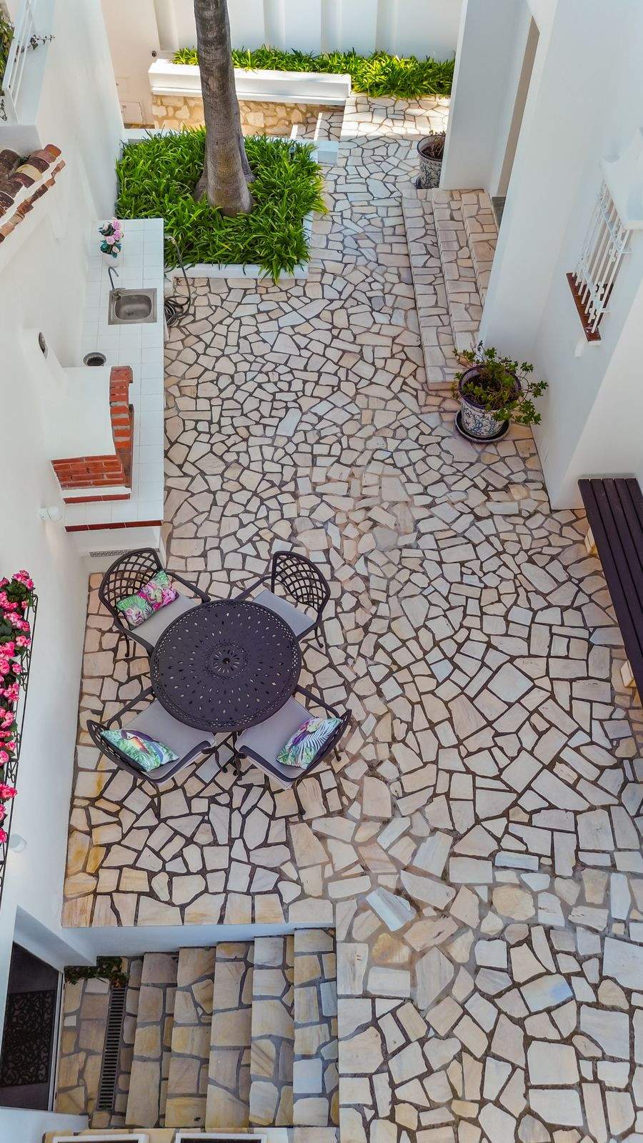 La propriété est couronnée par une superbe terrasse sur le toit offrant une vue panoramique à 360 degrés. Conçu pour profiter pleinement du plein air du lever au coucher du soleil, cet espace est équipé d'une cuisine extérieure et de douches – idéal pour organiser des soirées inoubliables à la belle étoile.