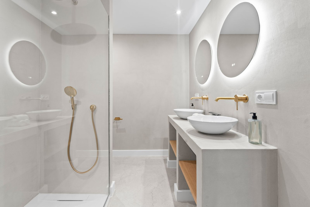 The villa offers 4 spacious bedrooms, each with its own ensuite bathroom, as well as two guest toilets. The master suite occupies the upper level and features a private terrace with spectacular sea views.