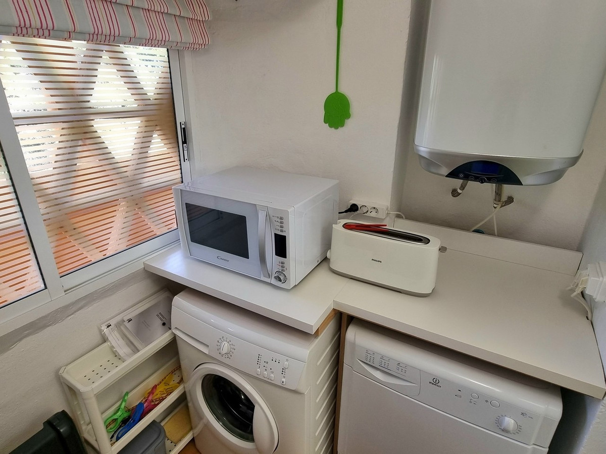 This inviting first‑floor apartment in the sought‑after El Porton community in Calahonda offers generous space, modern comfort and a wonderfully relaxed Mediterranean lifestyle. The home features two bedrooms and two bathrooms, including a main bedroom with an en‑suite bathroom, built‑in wardrobes and direct access to the large covered terrace. From here, you can enjoy southwest orientation, views over the gardens and a glimpse of the sea, creating an ideal spot for outdoor dining or unwinding in the sun.