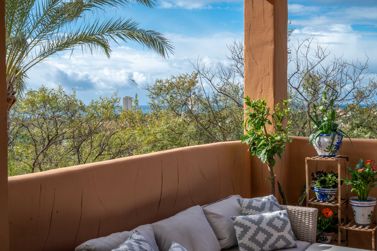 Residents enjoy access to a large communal swimming pool with sun loungers and landscaped surroundings. The community is known for its peaceful atmosphere while still being only minutes from the restaurants, shops and marina of Puerto Banús.