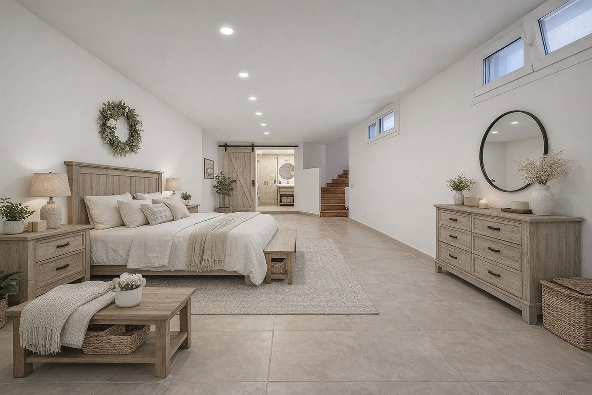 De la lumière naturelle partout : chaque pièce, sans exception, est dotée de grandes fenêtres. La maison respire et s’anime grâce à cette luminosité constante.