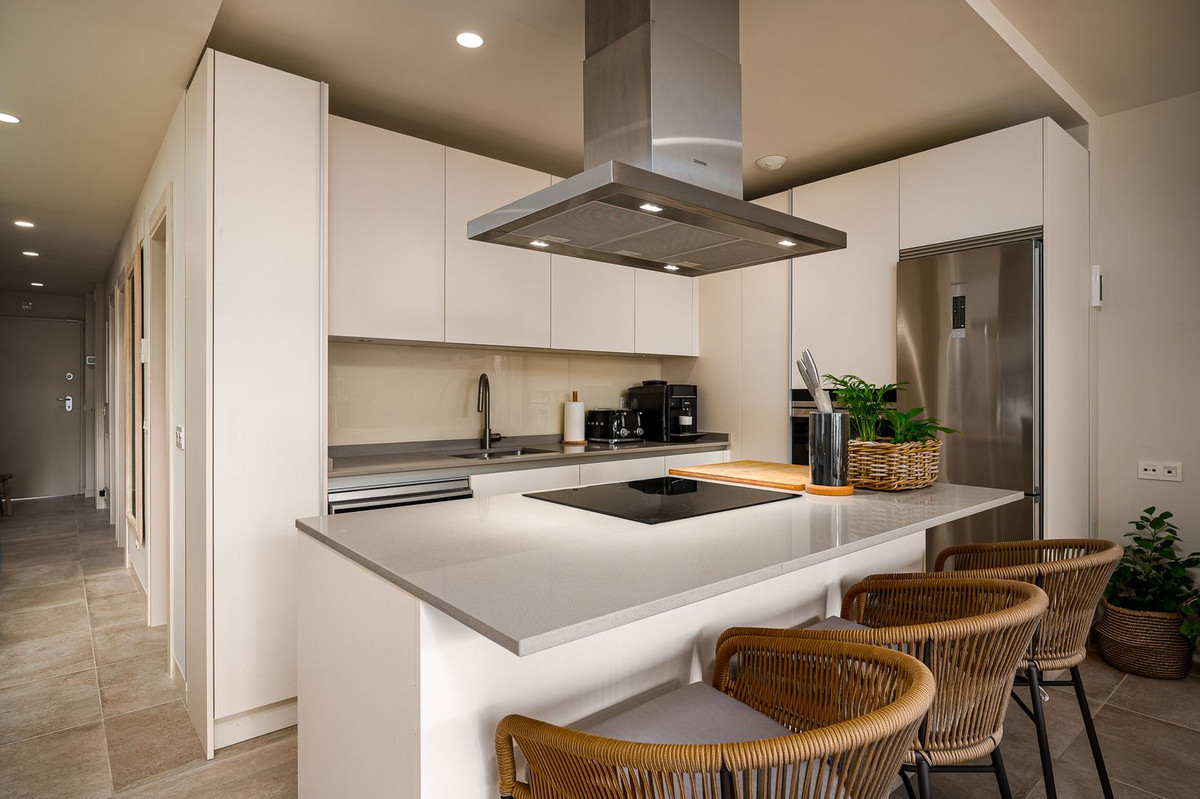 L'espace de vie se prolonge harmonieusement sur une généreuse terrasse privée dotée de son propre bassin, d'un salon intégré et d'une cuisine extérieure — un cadre sophistiqué pour de longues soirées méditerranéennes.