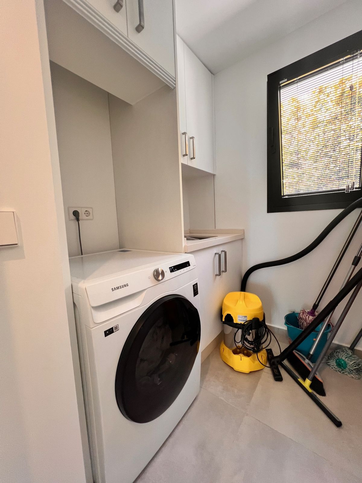 Cet étage comprend également la spacieuse suite parentale avec salle de bains privative et deux autres chambres partageant une élégante salle d'eau pour les invités. Toutes les chambres sont équipées de placards intégrés et de la climatisation individuelle. Une buanderie séparée offre un confort supplémentaire.