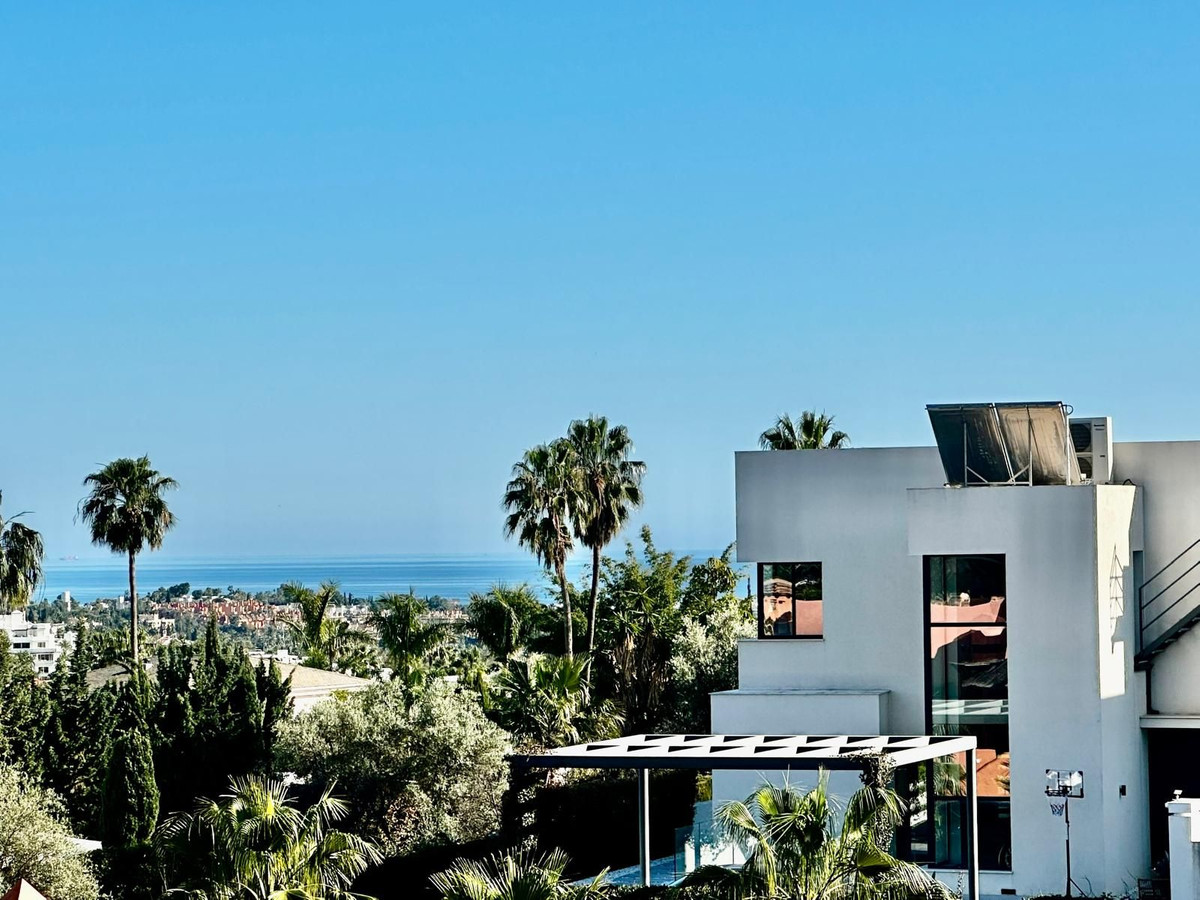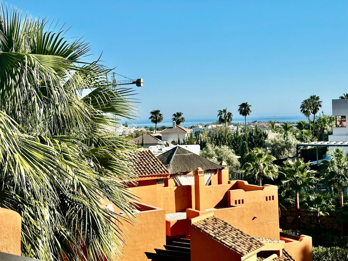 Spectaculaire penthouse en duplex de 3 chambres et 3 salles de bains, situé dans une résidence de standing à Nueva Andalucía. Récemment rénové, il allie élégance et confort. Au rez-de-chaussée, vous trouverez deux chambres spacieuses et deux salles de bains, une cuisine moderne entièrement équipée avec buanderie séparée, ainsi qu'un lumineux séjour/salle à manger donnant sur une magnifique terrasse couverte, idéale pour recevoir famille et amis. Cette terrasse permet également d'accéder à une grande terrasse ouverte, parfaite pour se détendre en plein air. À l'étage, la suite parentale dispose d'une salle de bains privative et d'un accès à un grand solarium privé offrant une vue imprenable sur la mer Méditerranée et les montagnes. La résidence offre un cadre paisible et prestigieux avec des espaces verts aménagés, une piscine et un service de sécurité. Ce bien comprend également deux places de parking et un cellier. Une opportunité unique pour ceux qui recherchent le luxe, le confort et une vue exceptionnelle dans l'un des quartiers les plus exclusifs de Marbella.