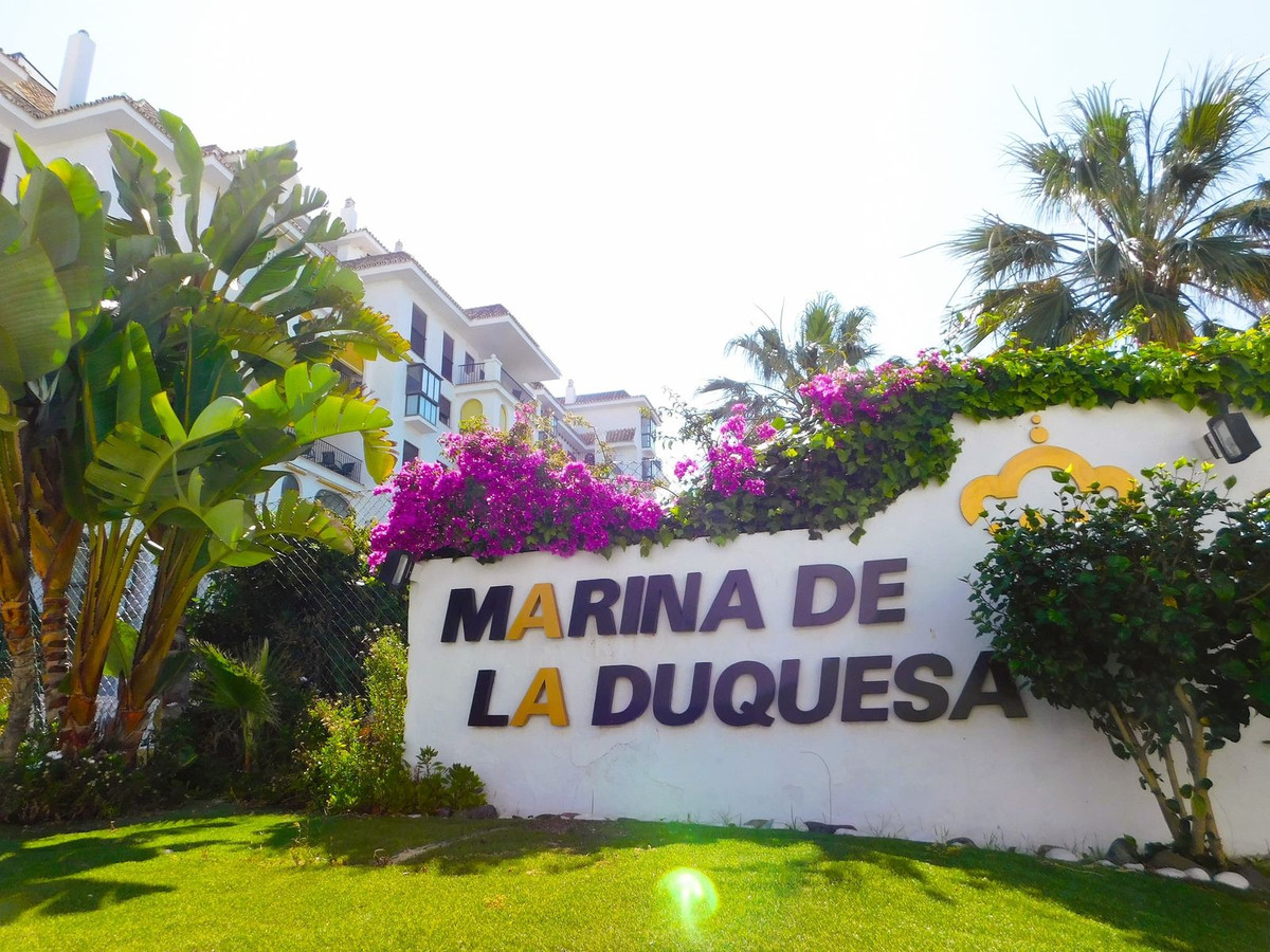Les portes-fenêtres du salon donnent sur une terrasse couverte, idéale pour dîner à l'ombre. Cette terrasse mène à un jardin commun sécurisé et offre une vue sur l'une des piscines communes. Les jardins communs sont bien entretenus et la résidence comprend quatre piscines. Deux courts de padel sont également à disposition. Marina de la Duquesa est une résidence sécurisée avec portail. La résidence bénéficie d'un accès direct à la promenade et à la magnifique plage de sable fin. La marina de Duquesa est à seulement deux minutes à pied. Cet appartement comprend également une place de parking privée en sous-sol et un cellier privé sécurisé.
