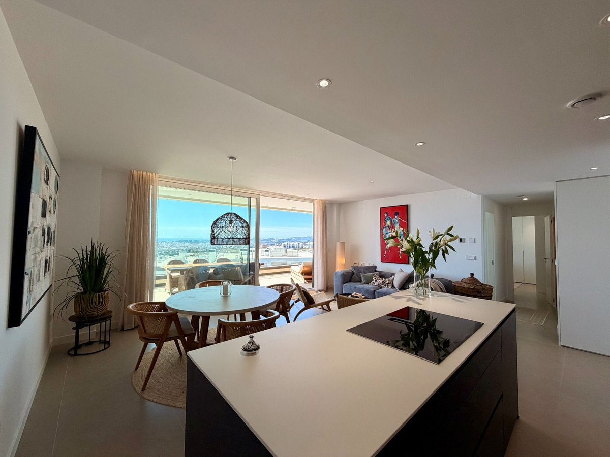 Ce penthouse contemporain offre une vue imprenable et dégagée sur la mer Méditerranée, le port de plaisance de Fuengirola et le littoral, créant un cadre spectaculaire du lever au coucher du soleil.