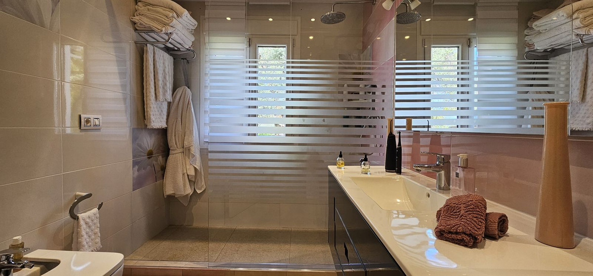 Ce terrain de 1025 m² est entièrement plat et comprend une piscine privée, un grand jardin arboré, un espace barbecue et un parking pouvant accueillir plusieurs véhicules. Bénéficiant d'un emplacement privilégié à quelques minutes de l'autoroute, dans un cadre paisible et à proximité des loisirs, des écoles et des commerces, la villa a été entièrement rénovée avec des prestations haut de gamme : parquet, panneaux photovoltaïques, chauffage aérothermique, climatisation, citerne et accès à un puits commun. D'une surface habitable de 260 m², elle offre 160 m² de surface construite, répartis en 3 chambres (dont une avec dressing) et 3 salles de bains (dont une attenante). Le salon dispose d'une cheminée et d'un accès à une terrasse couverte. Une grande cuisine séparée complète l'ensemble. Le jardin comprend des arbres fruitiers, une piscine d'eau salée, une salle de bains extérieure et un espace barbecue avec cuisine d'été.
