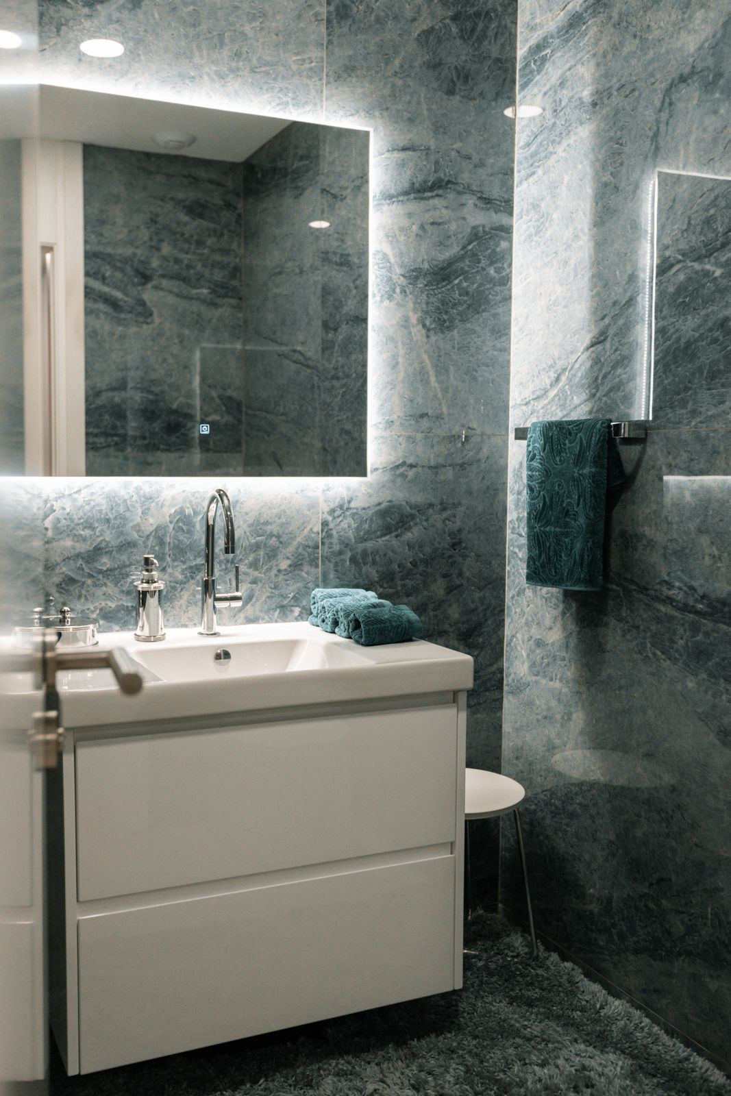 Cette propriété comprend trois chambres spacieuses avec salles de bains privatives et placards intégrés, ainsi qu'une salle de bains supplémentaire pour les invités. Le sol en marbre haut de gamme garantit durabilité et facilité d'entretien.