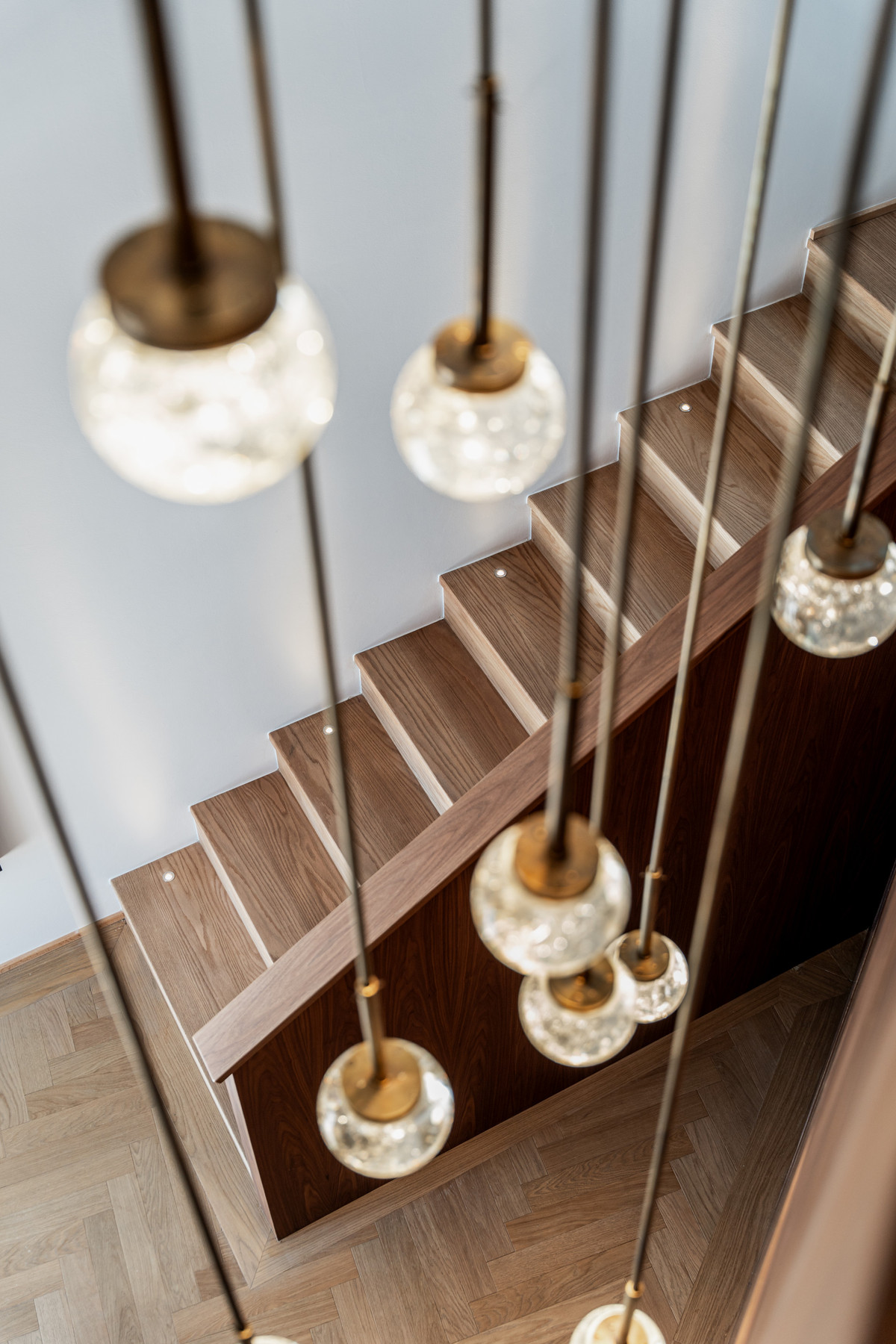 This is not your average Golf Valley villa. It has been redesigned with a clear architectural direction, where proportions, materials and flow have been carefully selected. From the entrance, the detailing is evident: herringbone oak flooring, bespoke walnut joinery, fluted cabinetry and dark-veined marble, all brought together with consistency rather than contrast for effect.