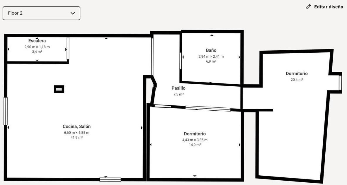 Cette propriété comprend une vaste pièce à vivre ouverte avec cuisine, salle à manger et salon, conçue pour un mode de vie moderne et convivial. Les deux chambres sont spacieuses et, tout comme le salon, bénéficient d'élégants balcons à la française donnant sur la rue, ce qui contribue à la luminosité et à l'atmosphère aérée de l'ensemble.