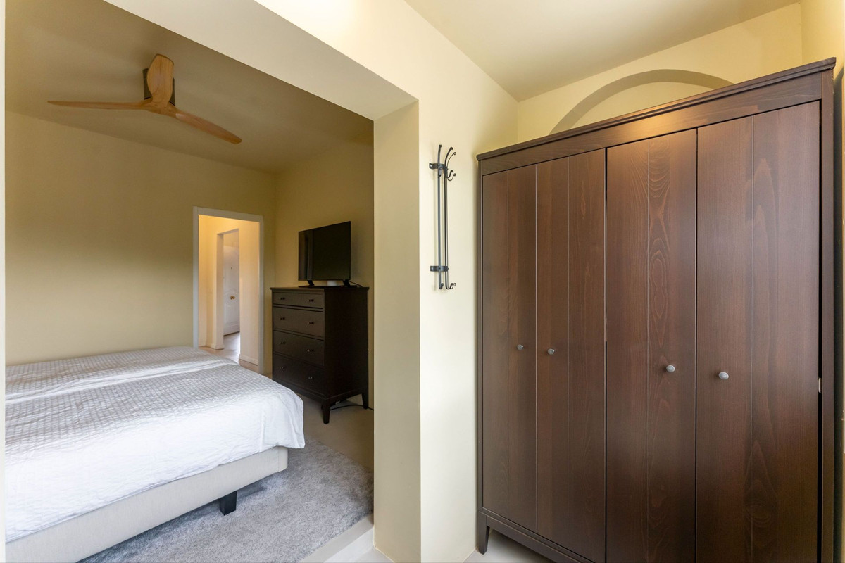 • Accès direct à une terrasse couverte privée, légèrement surélevée et donnant sur la cour et la piscine