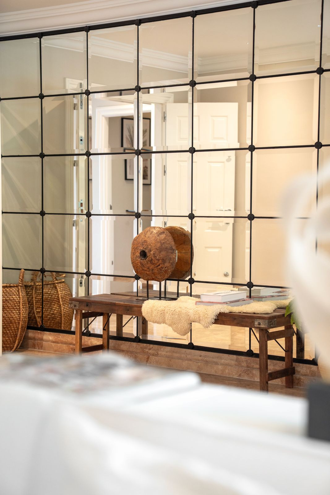 Un hall d'entrée majestueux, avec ses hauts plafonds impressionnants et ses deux caves à vin sur mesure, donne le ton dès l'arrivée. Il mène à une spectaculaire cuisine design de 50 m² entièrement aménagée, équipée de deux appareils haut de gamme Gaggenau, dont quatre fours, et d'un charmant coin repas avec cheminée – idéal pour recevoir des invités mémorables. Une cuisine d'appoint séparée avec buanderie ajoute un aspect pratique.