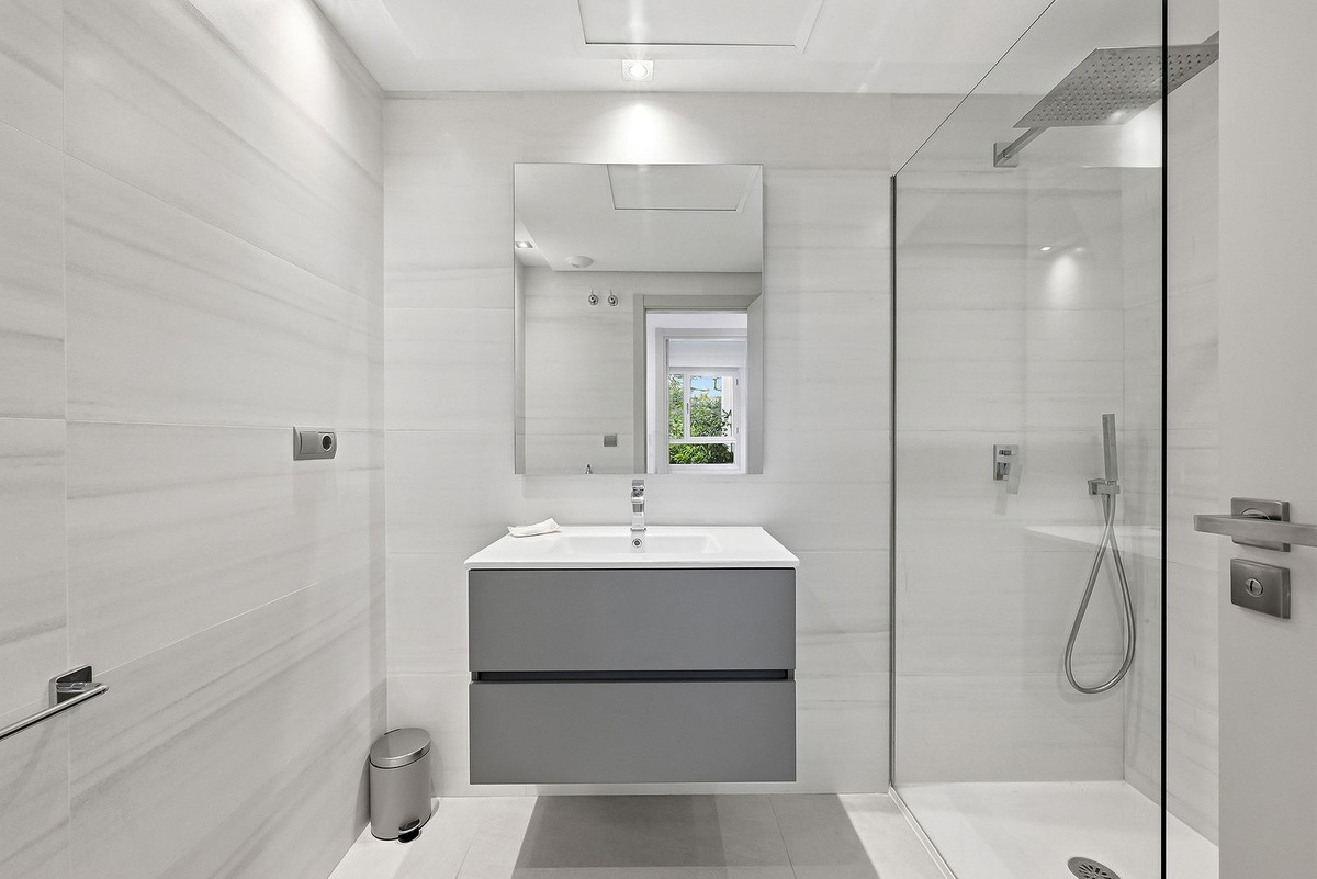 Les trois chambres sont spacieuses et dotées de placards intégrés, tandis que les deux salles de bains contemporaines présentent des finitions élégantes et de grandes douches à l'italienne.
