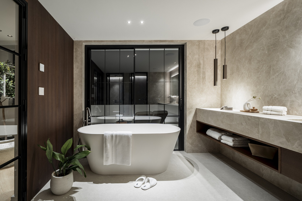 À l'intérieur, la maison se distingue par un choix élégant de matériaux, notamment un parquet à chevrons qui confère chaleur et raffinement à chaque pièce. La cuisine Danespan allie design épuré et fonctionnalité, créant un espace convivial et chaleureux, idéal pour le quotidien et les réceptions. La villa offre cinq chambres spacieuses, judicieusement réparties pour le confort de la famille et des invités. L'espace bien-être comprend une piscine intérieure, un sauna et un hammam, offrant une expérience de spa privée au sein même de la maison.