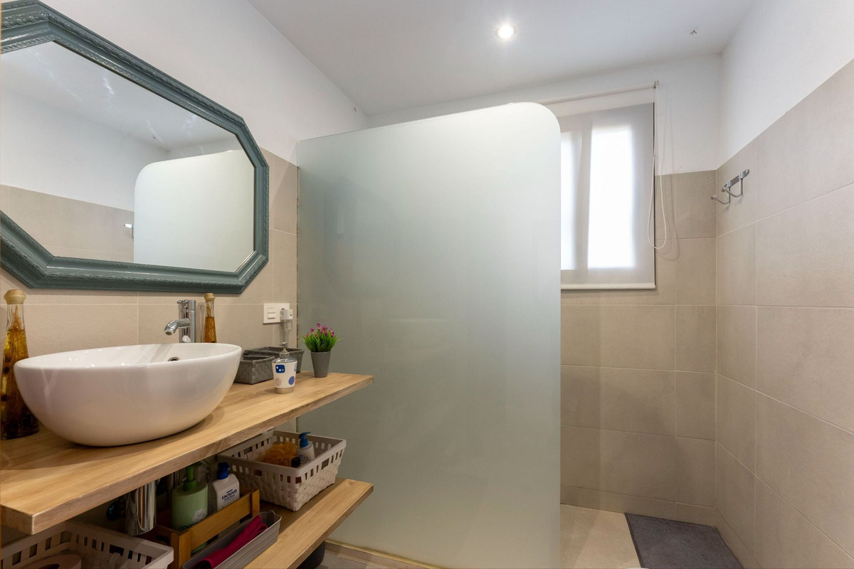 Cette propriété comprend une maison de plain-pied bien entretenue d'environ 130 m². Elle se compose de trois chambres et de deux salles de bains, dont une suite parentale. Le cœur de la maison est une cuisine ouverte conviviale en forme de L sur le séjour, conçue pour un confort optimal au quotidien et pour recevoir. La climatisation est installée dans la cuisine et le séjour, garantissant un confort optimal toute l'année.