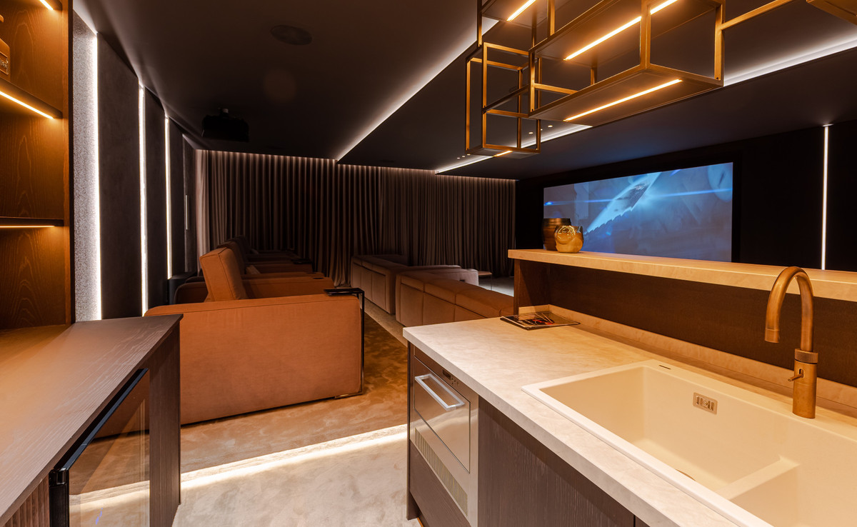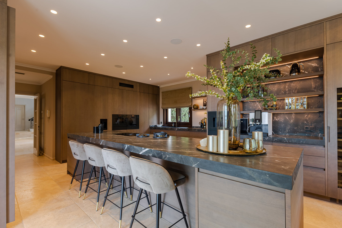 Au rez-de-chaussée de cette villa se trouvent une magnifique salle de cinéma avec son élégant bar, une salle de sport entièrement équipée, un sauna, un bureau privé, deux chambres d'amis supplémentaires avec salles de bains privatives et un garage pouvant accueillir au moins quatre voitures. Ce ne sont là que quelques-uns des atouts de cette fabuleuse maison familiale. Que vous souhaitiez vous détendre et admirer la vue imprenable ou profiter d'équipements de luxe, cette villa saura satisfaire toutes les envies.