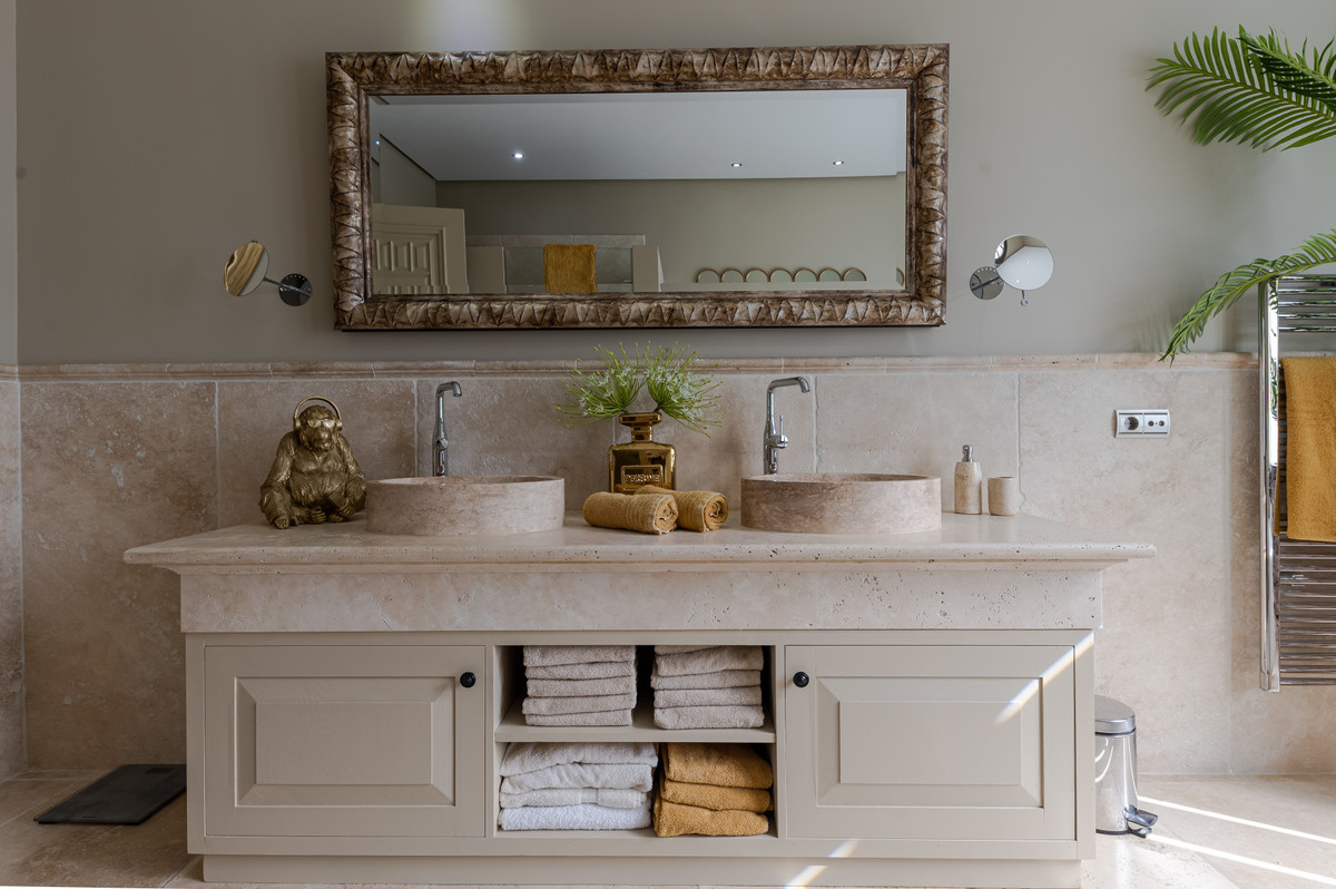 De retour à l'intérieur de la villa, sur ce même étage, vous trouverez également trois grandes chambres avec salles de bains privatives. À l'étage, une autre chambre d'amis avec sa propre salle de bains privative et la spacieuse chambre principale avec son dressing, sa cheminée et sa terrasse privée où vous pourrez également profiter de la vue.