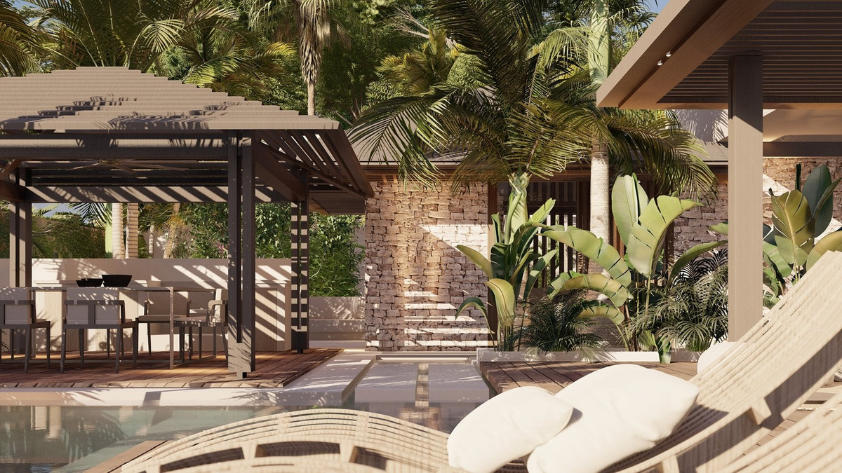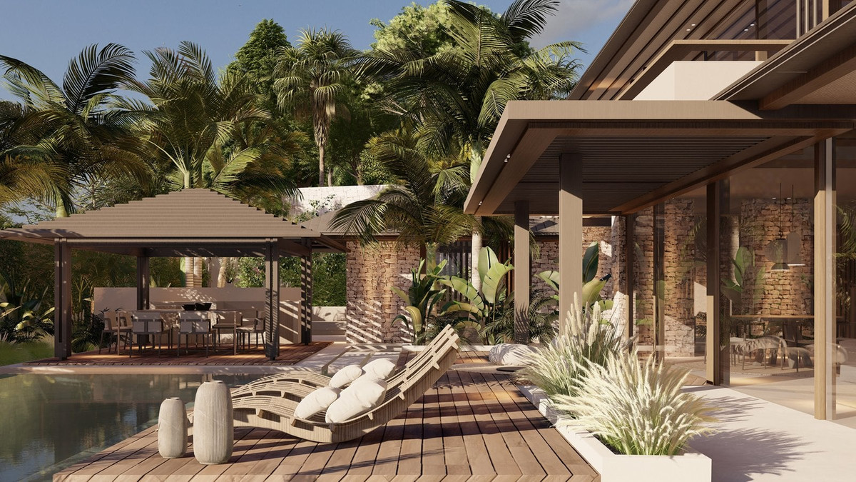 La villa Hayami, un projet de Japandihome conçu par le cabinet d'architectes renommé Nmobe, incarne l'alliance parfaite entre architecture haut de gamme et élégance raffinée. Répartie sur trois niveaux, la villa comprend cinq chambres magnifiquement aménagées, chacune dotée d'une salle de bains privative, soit six salles de bains au total, ainsi qu'un WC invités. Offrant 525 mètres carrés d'espace intérieur sophistiqué, le design met en valeur des matériaux naturels et des finitions élégantes qui confèrent à la villa un style intemporel.