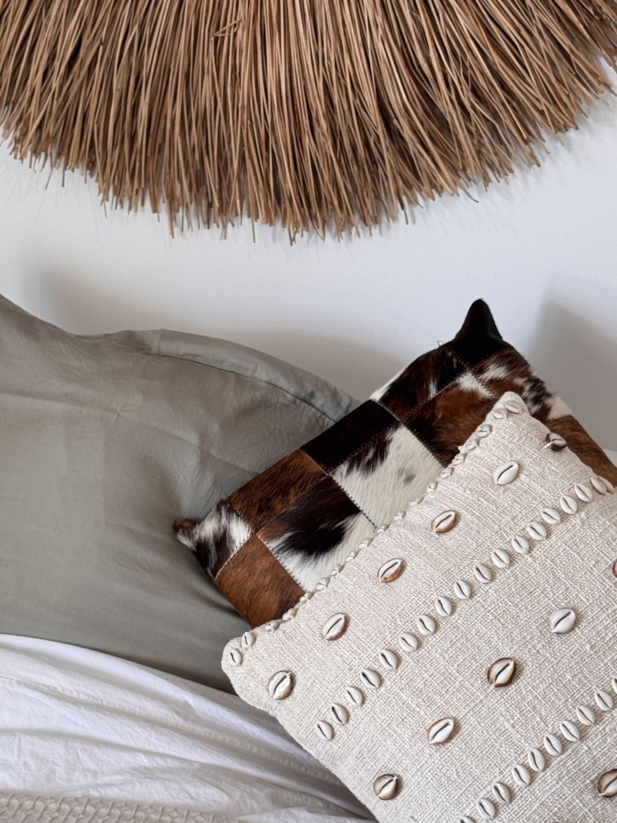 L'agencement propose trois chambres judicieusement agencées pour préserver l'intimité : deux chambres confortables avec salle de bains chacune d'un côté de l'espace de vie ouvert comprenant salon et cuisine, tandis qu'une suite parentale spacieuse avec sa propre salle de bains attenante est située à l'extrémité opposée.