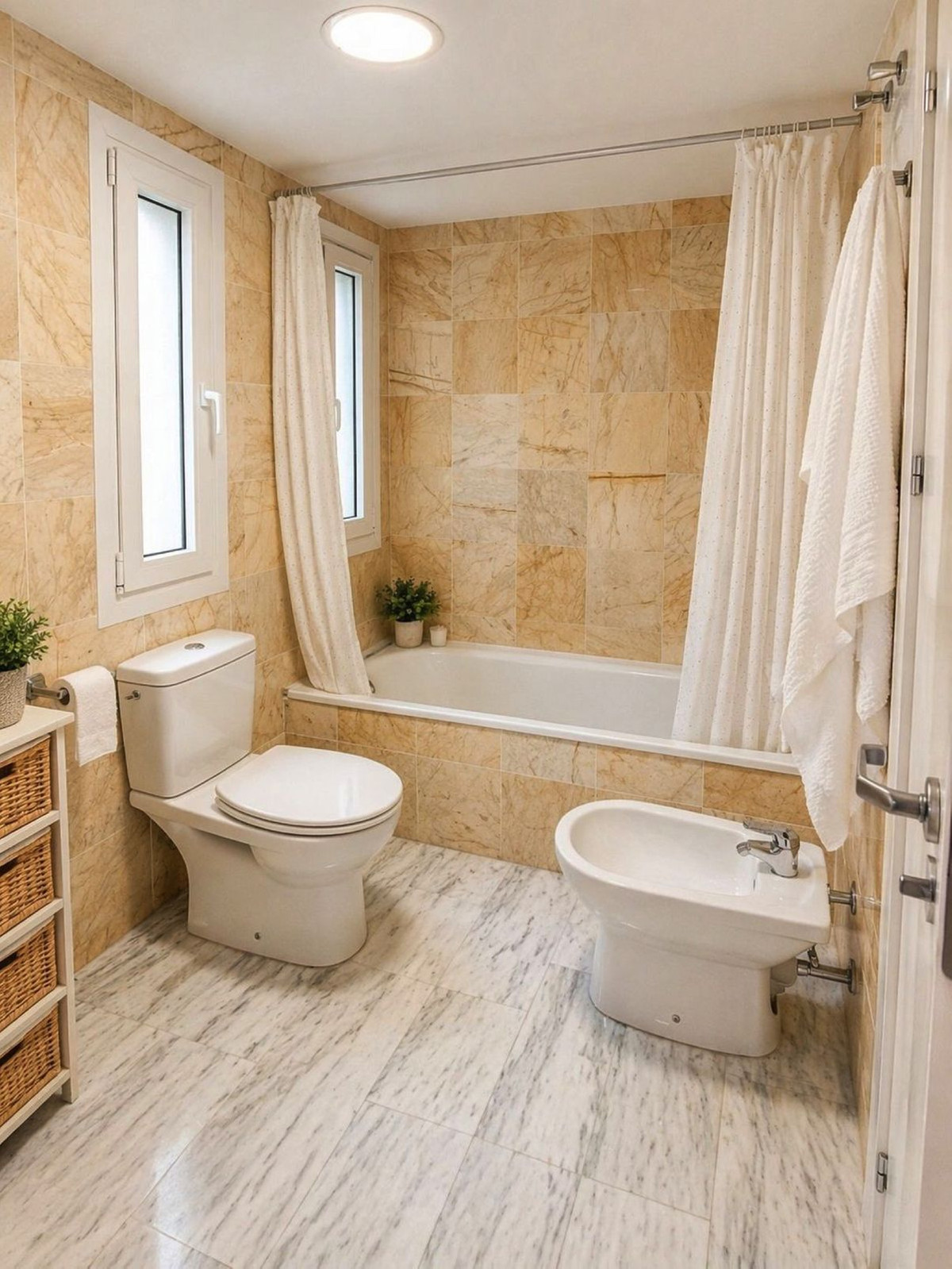 Cet appartement comprend 2 chambres et 2 salles de bains, et bénéficie d'une disposition lumineuse et fonctionnelle. Son orientation est garantit une agréable lumière naturelle le matin et une température confortable tout au long de la journée.