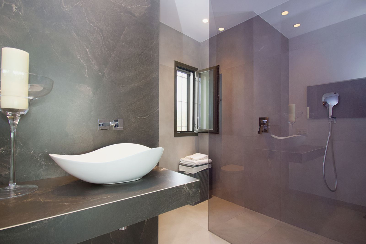 La villa comprend trois chambres spacieuses, dont une élégante suite parentale avec salle de bains privative, ainsi qu'une salle de bains supplémentaire raffinée. Le séjour lumineux et ouvert, grâce à ses grandes baies vitrées, offre une atmosphère chaleureuse et accueillante et communique harmonieusement avec la cuisine moderne et entièrement fonctionnelle.