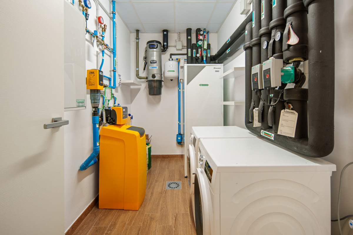 Cette résidence est conçue avec fonctionnalité plutôt que superfluité. Le niveau inférieur, véritable espace de vie, abrite une salle de billard et un salon multimédia, un bureau, une suite d'invités et un accès direct au garage privé, préservant ainsi la sérénité et le calme de l'étage principal. À l'étage, trois chambres avec salle de bains privative, dont la suite parentale, jouxtent une cuisine ouverte sur la salle à manger et le salon, qui s'ouvre sur la terrasse et le jardin paysager. Les matériaux sont à la fois agréables au toucher et durables : marbre naturel, parquets, menuiseries sur mesure, robinetterie Villeroy & Boch. La technologie est intégrée avec élégance : système audio multiroom, climatisation Technoclima, chauffage au sol et système de sécurité Marbejer, complété par une caméra thermique périmétrique et la reconnaissance faciale du fabricant allemand Mobotix. Le résultat : une maison fonctionnelle et sécurisée, digne d'une résidence privée, et non une vitrine ostentatoire.