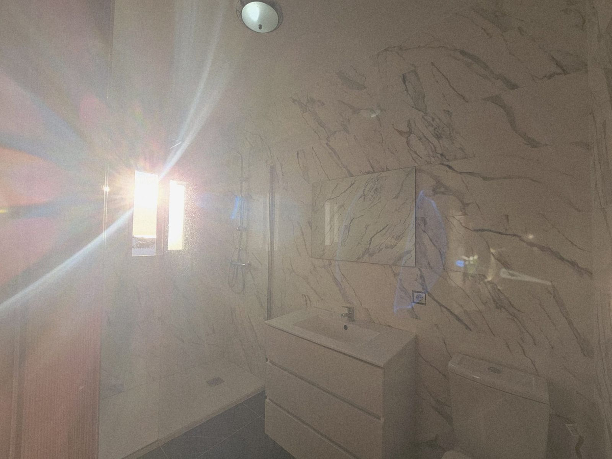Premier étage : Deux chambres spacieuses, de grands placards intégrés, une grande salle de bains avec douche à l’italienne, ainsi qu’une buanderie extérieure sur la terrasse et, sur cette même terrasse, un escalier menant à la terrasse supérieure.
